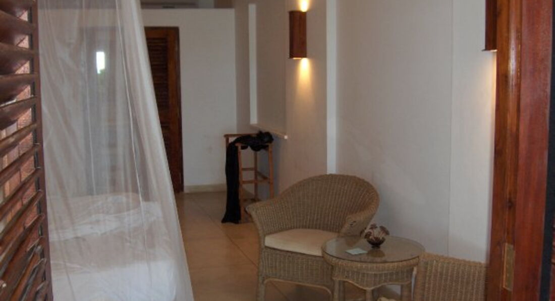 Посетили данный отель в апреле 2014 г. Все началось с того что захотелось поплавать в Индийском океане, поэтому купили билеты и полетели. Перелёт компанией Emirates через Дубаи, задержка туда 2,5 ч, но на трансфере нас честно подождали и мы бежали через терминал и все таки успели на пересадочный рейс. НО! не успели наши чемоданы. Прибыв в аэропорт, заполнили анкету на наш чемодан, обещали подвезти который к ночи. Не обманули, привезли в отель, на том и распрощались. Ещё в Москве заказали трансфер в переписке с хозяином отеля. Поселили по приезду на второй этаж за 60 долларов, номер более чем скромен, кровать, старая тумбочка и душ. Переселились на 1 этаж в номер попросторнее и с достаточным комфортом. Единственное отсутствует в номерах холодильник и ТВ. Пляж под боком, спустился и ты в океане. Питание в ресторане при отеле более чем достойное. Ходили для сравнения в несколько кафешек в округе (Peacock и рядом с центральной улицей), не вдохновило. По экскурсиям ездили в Яла парк (животный мир потрясающий), черепшья ферма, сад специй.