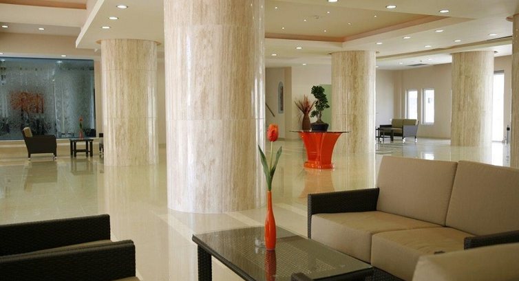 Расположение удобное, близко к морю и в далеке от дороги. Очень много отдыхающих с детьми. Номера большие и удобные. В номере есть свой кондеционер, телевизор, двухспальная кровать, камод с зерколом, тумбочки, столик, кресла, телефон и холодильник, в ванной душ и фен. Номера убирали и меняли полотенца каждый день, за 12 дней поменяли два раза пастельное бельё. Большой бассейн. Персонал очень доброжелательный. Еда разнообразная и вкусная. Туроператоры встетили, все рассказали и проводиили отлично. Отдых супер.