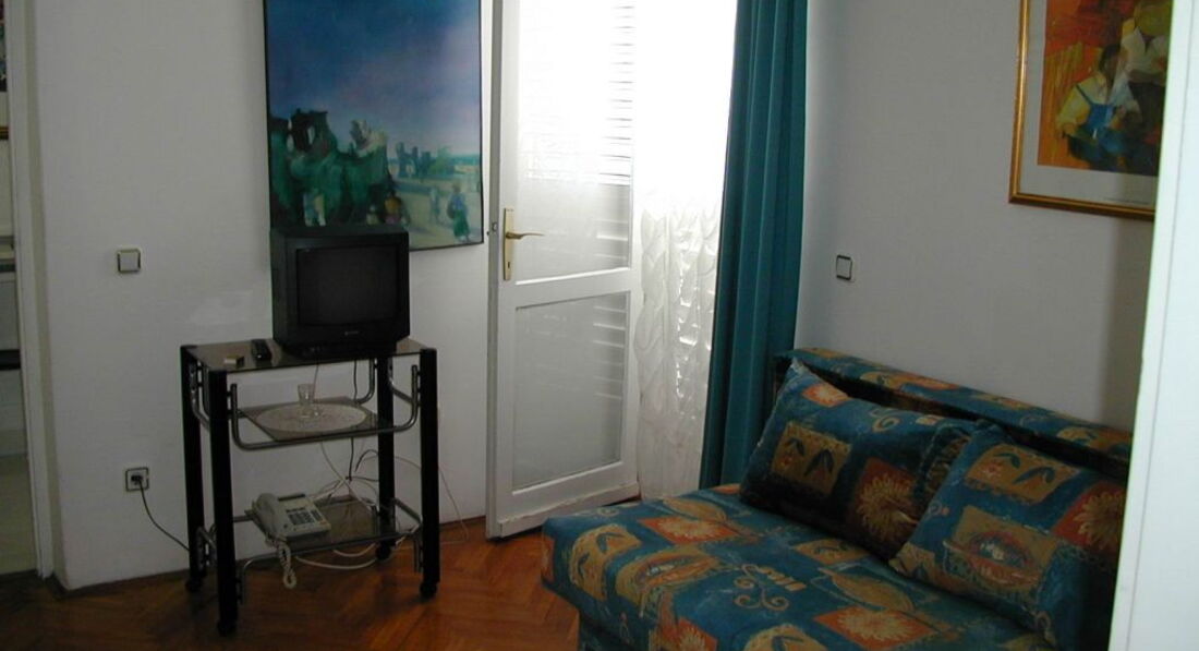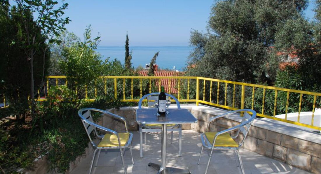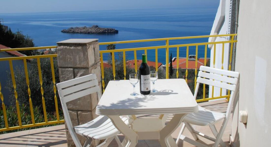 APP 04: Двокімнатний апартамент складається зі спальні та вітальні, розрахований максимум на 4 особи, площа 34 м2 + велика тераса 12 м2 з видом на о. Св. Стефан.