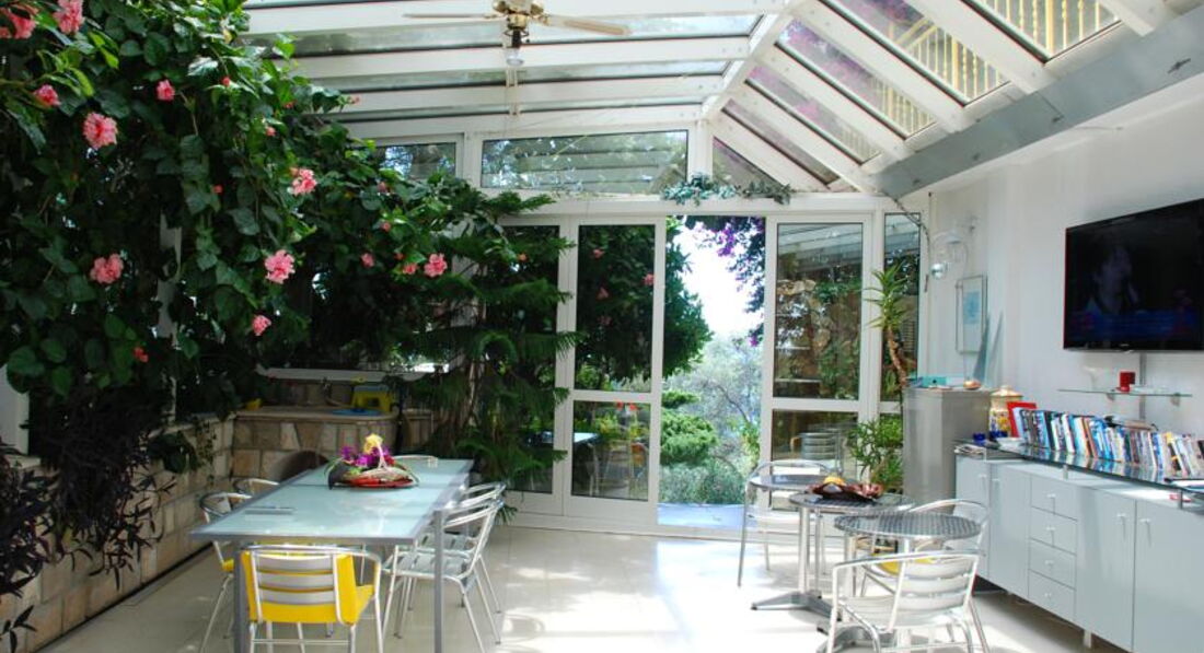 APP 03+1: Двокімнатний апартамент складається зі спальні та вітальні, розрахований максимум на 4 особи, площа 34 м2 + велика тераса (11 м2) та власний сад, що дивляться у бік моря.