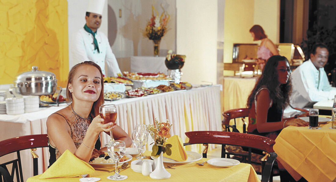 головний ресторан розрахований на 84 особи (критий, з кондиціонером, дитяче меню, дієтичне меню, дитячі стільці), бар біля басейну, бар на пляжі, шиша-бар.