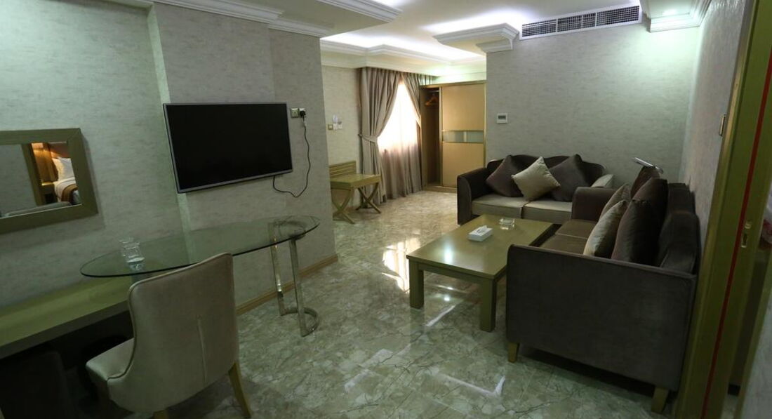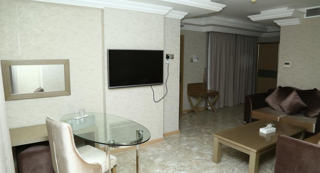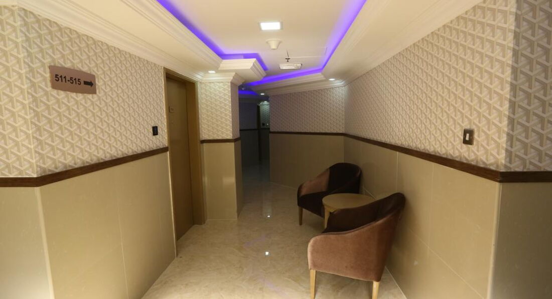 Гостиница внутри и в номерах, все в арабском стиле - мебель, светильники... все красиво и культурно. Лифт разумеется есть.