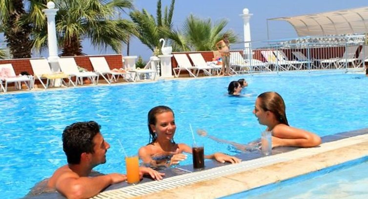 Територія та послуги: • Відкритий басейн, площа 175 кв. • Дитяче відділення у відкритому басейні • Критий басейн, 10 кв. • Бари: 2 • Лікар платно, цілодобово • Пральня платно • Сейф на Reception платно Розваги та спорт: • Настільний теніс • Волейбольний майданчик на пляжі • Дартс • Дискотека (у закритому приміщенні) Для дітей: • Дитяче ліжко Живлення: Все включено (свіжі соки платно). Сніданок: з 08:00-10:00, Обід: з 13:00-14:00, Час чаю: о 17:00, Вечеря: з 19:30-21:00. Пляж: Власна частина міського піщаного пляжу завдовжки 180м. На пляжі шезлонги, матраци, парасольки. Між пляжем та готелем пішохідна дорога.