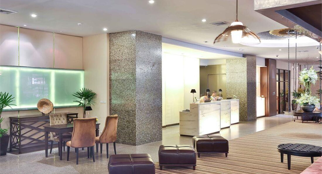 Отдыхали осенью 2017 вдвоем, расположение у отеля отличное! рядом ТЦ Фестиваль, до моря 5 минут, магазины, обменники рядом. Завтраки обалденные, разнообразные! всегда соки и свежие фрукты, омлеты, яйца, блинчики, много салатов, картофеля и прочих разнообразных блюд. Обслуживание в отеле тоже хорошее,охранники всегда приветливы и вежливы, на ресепшене тоже, но заселили нас не быстро, за то подарили комплимент от отеля :) на 6 этаже посторонних звуков не слышно было совсем, вид может быть не очень, поскольку вид на соседний отель, и сбоку море). бассейн и правда очень маленький, вечером в тени и не поплаваешь особо - прохладно, но есть бар в бассейне (напитки за деньги), мы брали коктейли и они были хорошие. Уборка каждый день всегда идеальная, мы оставляли в благодарность немного денег пару раз. Тук тук остановливался рядом, парковка для мопеда бесплатная и рядом с отелем. Минус расположения в центре - это бары с шестами и тансовщицами и трансы, трансов немного, но когда муж ходил один ему кричали вслед. Ещё прям рядом с отелем хороший массажный салон, выходя из отела слева за шагбаумом, ходили туда несколько раз, прекрасные женщины с золотыми руками)) там всегда ожиатаж из европейцев. В номере всё было (вода, полотенце, халат, шампуни и прочее). Отель советую, хороший сервис, завтраки, и самый центр (для семьи с детьми может не очень, из-за баров)