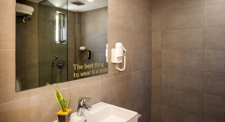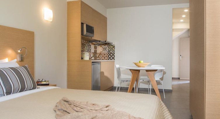 Типи номерів: studio (осн. ліжко – 2 односпальні (двоспальне на запит), дод. – софа макс. 3 чол., 30 м2); apartment 1-bedroom (спальня з дверима, вітальня, осн. ліжко – 2 односпальні (двоспальне за запитом), дод. – розкладна софа, макс. 4 чол., 45 м2); suite 2-bedrooms (2 спальні з дверима, вітальня, осн. ліжко в першій спальні – 2 односпальні (двоспальне за запитом), осн. ліжко у другій спальні – 2 односпальні, дод. – розкладна софа, 2 ванні кімнати, макс. 6 чол., 65 м2).У номері: сейф: у номері, безкоштовно (laptop size) набір для приготування чаю/кави зміна білизни: 2 рази на тиждень банні приналежності кондиціонер: індивідуальний кавомашина зміна рушників: 2 рази на тиждень прибирання номера: щоденно телефон підлога: керамічна плитка балкон або тераса фен: є ТБ: супутникове обладнана кухня душ Інтернет: Wi-Fi, безкоштовно міні холодильник звукоізолюючі вікна