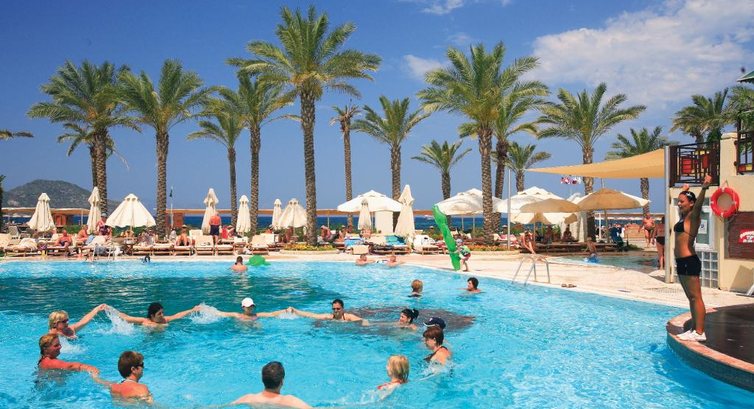 В Турции не первый раз,но именно в этот раз все было супер !Отэль очень понравился, приветливый обслуживающий персонал,веселые и доброжелательные аниматоры.Уборка в номере каждый день.Бар в номере пополняли каждый день(воду,минеральную воду,колу,спрпйт,фанту)в номере есть чайник ,чай,кофе,сахар.Бесплатно катали на банане.Можно было брать каноэ и плавать. Так же бесплатно можно играть в бильярд(оставляеш залог 5$ и играй сколько хочешь).Не далеко от отеля (примерно 15-20мин.)есть рынок ,там можно купить сувениры,оливковое маслои очень вкусный гранатовый соус (4-5$ 1 литр),одежду .Так же там (в самом Тургутрейсе) пирс где ооочень много яхт ,есть парк -вообщем есть где погулять.Про еду:кормили очень хорошо-красная рыба,мидии,раки,креветки,роллы,язык,мясо и вяленое, и вареное,и тушеное,голодными точно не останетесь...Из фруктов были яблоки,бананы,груши,инжир,персики,никтарины,ананасы,грейпрукты,апельсины.Можно один раз сходить(по записи)в индийский,китайский или рыбный ресторан,мы ходили в китайский (не понравилось!)дали какие то чипсы,острый суп и острую курицу с гарниром(рис).Хвалят рыбный ресторан ...Из спиртного пили тэкилу,виски,пиво (эфест)и коктэли (названия не помню)ребенок брал коктель бэби лайф( из всех коктелей самый вкусный).Брали на прокат трехместный "мопед" час стоит 12$ -катались по набережной.вечером играла живая музыка и пели на турецком и английском .Вернулись бы сюда снова!!!отдых прошел на 5+!!!