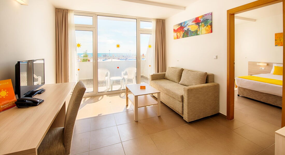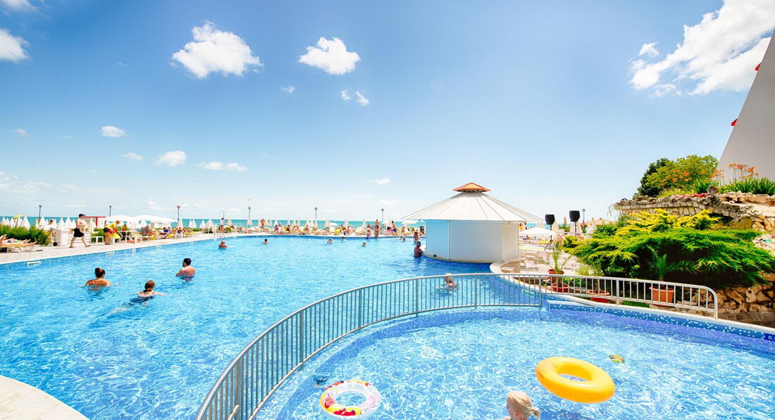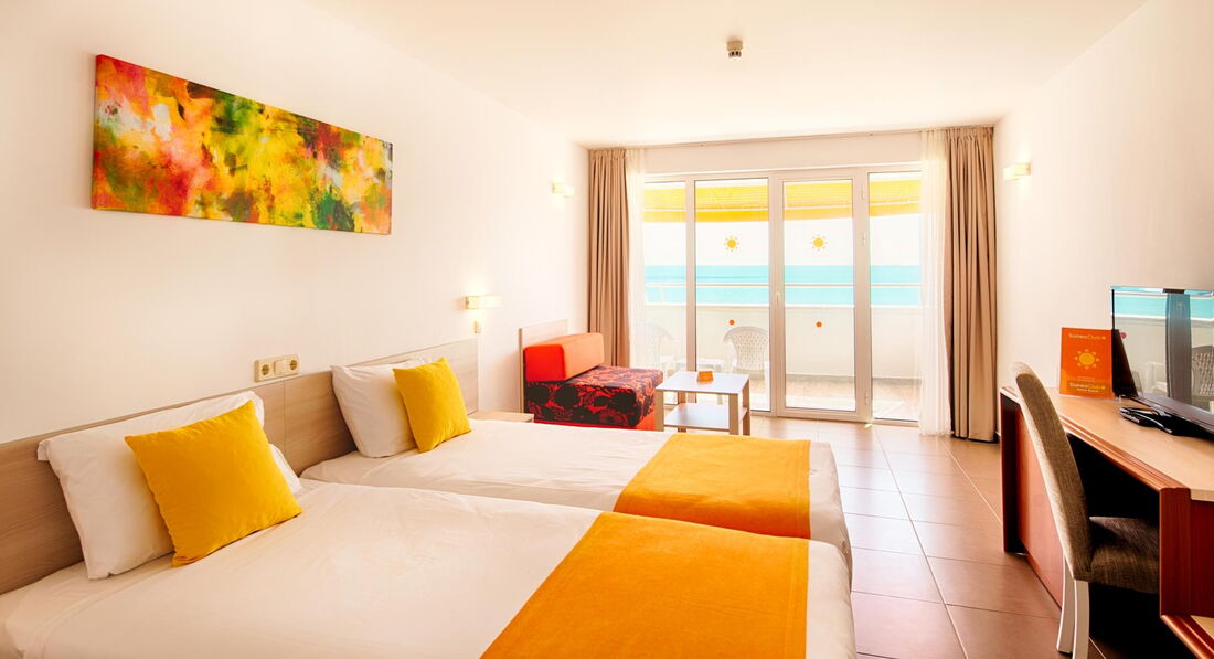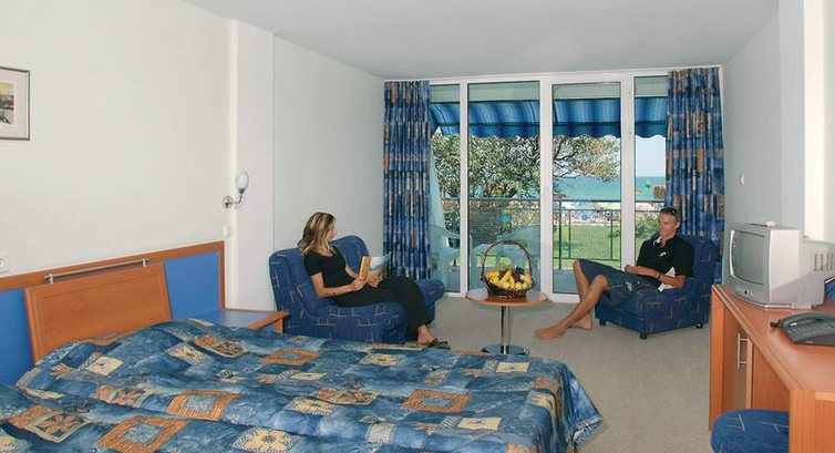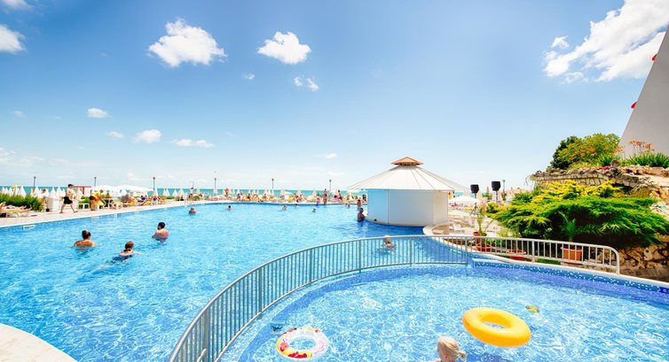 Вдала пропозиція: гостинний готель на березі моря Номери цього готелю яскраво оформлені, і це створює особливий, відпускний, настрій! Тут ви проведете час у спокійній, розслабленій атмосфері, але при цьому насолоджуватиметеся всіма перевагами «Все включено». Анімація, розваги в готелі проходить 6 днів на тиждень. А щоп'ятниці проходять тематичні вечори, де ви зможете поринути у світ болгарської культури.