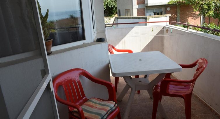 У нас был трехместный номер на третьем этаже с восхитительным видом с балкона на город и море. Оснащение номера на твердые 3 звезды - свежий ремонт, кондиционер, ТВ, холодильник и фен, посуда - чашки, тарелки, ложки. Впрочем, в начале июня кондиционер нам не понадобился - спали с открытыми окнами, благо на них есть москитные сетки. За 9 дней в комнате 3 раза убрались и один раз поменяли белье, так что мусор выносили сами....
