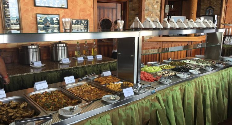Завтрак и ужин типа шведского стола, но выбора блюд совсем нет. Обед в посадку и только то, что приготовили. Во время еды напитки бесплатно. Готовили на самом деле очень качественно. Фруктов достаточно. Но ребенку до 2 лет в ресторане выбрать практически нечего.