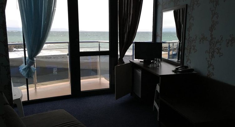 Уважаемые господа! Я не могу понять, почему появляются плохие отзывы об этом отеле-мне не понятно. Тур стоил на 2 чел -взрослый +ребенок 9 лет-19 тысяч рублей на 2 недели, плюс визы, плюс топливный сбор, все вместе 29 тысяц, вылет был 8 июня. Никогда!! не берите в Болгарии полупансион, а тем более полный пансион. Рядом куча кафешек,где со спиртным можно поесть на 200 руб на человека. Отель стоит прямо на набережной, повезет, если получите номер с видом на море-вид шикарный, на город тоже ничего, стройка рядом закончена, и вид вполне приличный. Самое приятное, что перед отелем нет ресторанов, если у вас вид на море-то можно открыть окно, и не будет мешать шум и музыка с ресторанов. Отель стоит практически на море, между отелем и пляжем дорога, но движение не интенсивное. Завтрак очень приличный- яйца всяческих видов, огурцы-помидоры, итд. Из недостатков-очень маленький номер, ну и душ, как часто в Болгарии-сделан в стене, ни занавесочки, ничего. Но мы уже не первый раз в Болгарии, поэтому нас это не шокировало. Поморие-очень приятный городок, есть где прогуляться, 2 набережных, при чем на 2 набережной очень мало народу, никогда не понимала почему)).Куча магазинов и ресторанов. Любимые мои города в Болгарии - Поморие и Созополь. Не знаю кто там хает этот отель, да, не 5, но для 3 зв вполне приличный, новенький, чистенький.Так что рекомендую, особенно для отдыха с маленькими детьми и пенсионерам-до моря 2 шага, да и до всей инфрастуктуры идти 5-10 мин.