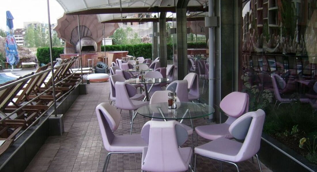 Персонал по-русски не говорит, кроме одной пожилой уборщицы и самой хозяйки За сервис НОЛЬ!!!!!!!. Мусор не выносили, приналежности не приносили, туалетную бумагу просила сама. Спросила на пятый день, почему не вынесли из номера мусор ни разу, мне в номере оставили рулон пакетов для мусора. Номер за две недели не убирался ни разу, если и убирался, мы этого не заметили. Постели поменяли на восьмой или девятый день, полотенца тоже. Девушка на ресепшене отвечала неприветливо, вторая вроде ничего, парень на ресепшене по имени Дэни мне понравился, доброжелательный. Официанты в ресторане (но как-то язык не поворачивается назвать это рестораном, так... кафе, где мы питались) хватали наши тарелки со столов, хотя мы еще не доели. Не знаю, может, старались очень))) Первую неделю в отеле в основном жили болгары, питание было хорошее. Много мяса, овощей, фруктов.На второй неделе приехало очень много молдаван, питание стало значительно хуже. Приходить надо было только к началу обеда, ужина, чтобы взять нормальную еду. Если позже, выбор был уже скуднее, разнообразия было на второй неделе тоже мало. А потом даже тарелки поставили меньше по-размеру, видимо, чтобы меньше набирали))).Завтрак был традционный - омлет, вареные яйца, сосиски, брынза,огурцы, помидоры,булочки, джемы, хлопья. Блинчики не пекли ни разу. Был полдник, который длился полчаса. В это время давали каждый день мороженое, булочки, иногда пекли вафли. По обед и ужин уже написала. Иногда создавалось впечатление, что хозяйка ходит по рестрорану и сморит в тарелки, кто сколько набрал. Но у меня претензий не было, так как за 12 евро на семью мне было нормально. Алкоголь нормального качества, пиво вкусное, ракия неплохая в отличие от турецкой, виски, джин вроде тоже ничего. Вино видимо, все таки спиртом разводили. Есть аппарат чай-кофе. Кола, спрайт, тоник, газированные напитки в неограниченном количестве целый день и до 22 часов.