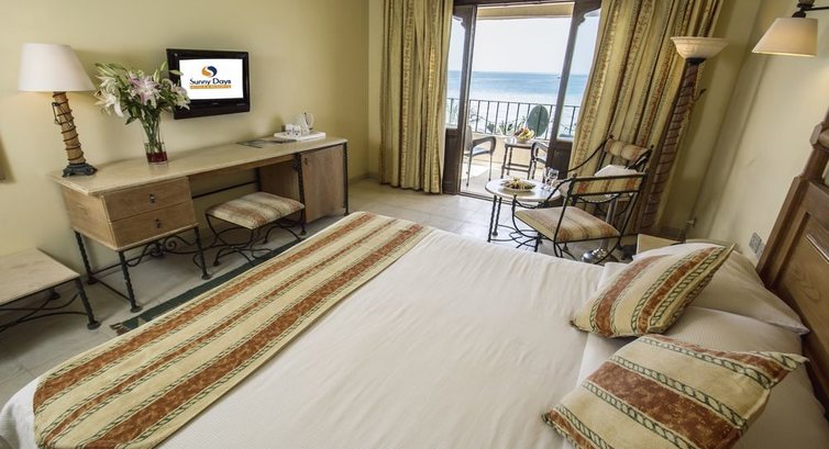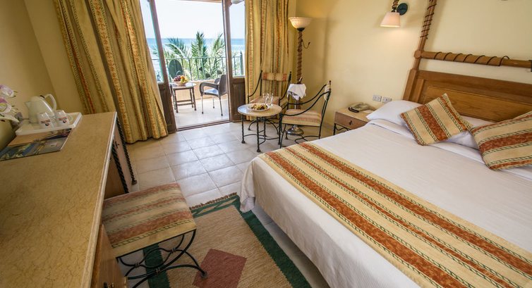 Хорошее расположение,с одной стороны лагуна ,глубина 4 м,с другой-море,вернее залив.глубина 0,5 м,можно побродить по песчаному дну,прозрачная вода,только надо смотреть под ноги-острые камни,иногда заплывает рыба-скат или мурена.Температура воды в море+23,в бассейне отеля-вообще теплая.В номере всегда включенный холодильничек,по телевизору есть три украинских канала.Уборка в номере-когда скажешь,а если подаришь шоколадку -то каждый день.