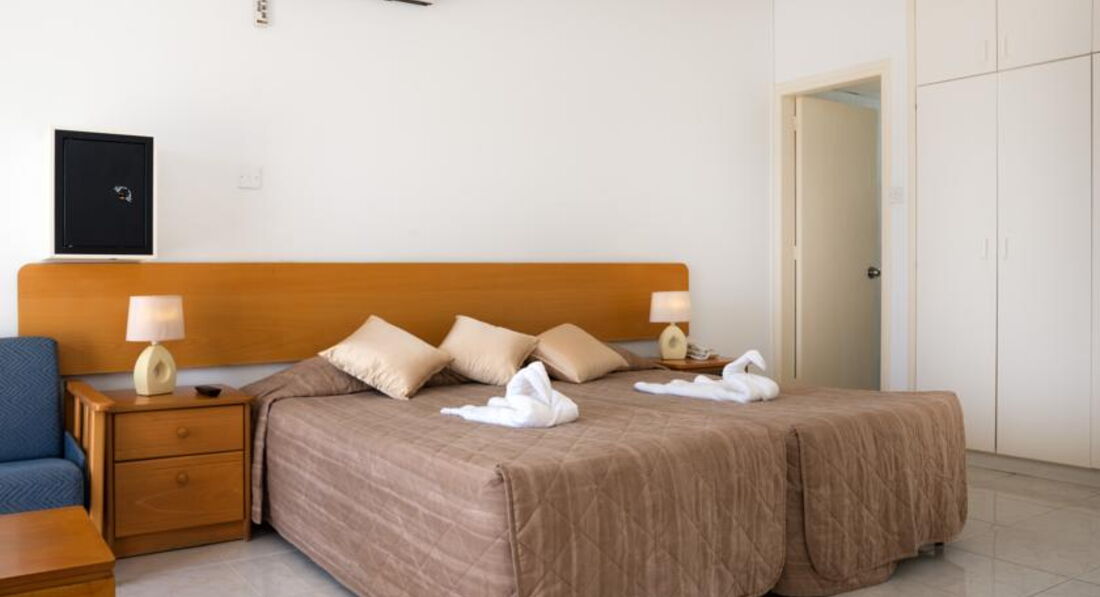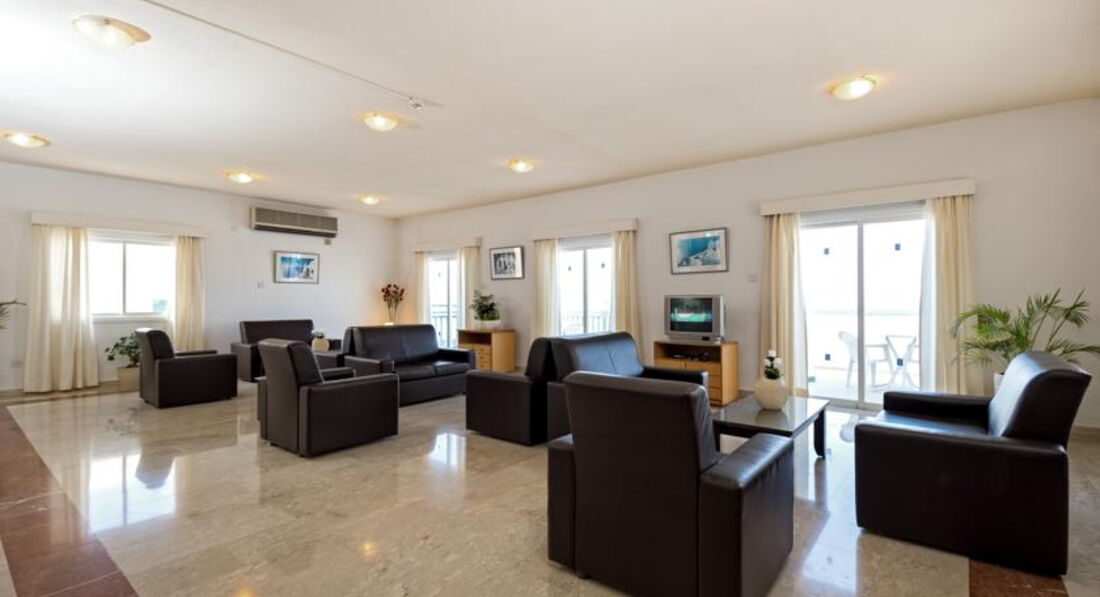 Всем привет. Вчера вернулись с женой и дочкой 4-е года, из этого отеля. Могу сказать что все очень понравилось. Не пожалели нисколько, что выбрали не дорогие аппартаменты, Во-первых: хороший чистый 2-х комнатный номер с кухней, которой мы практически постоянно пользовались. Номер убирали каждый день. Полотенца раз в три дня, белье раз в пять. Заселили сразу по приезду без всяких проблем. До моря идти 10-15мин. Пляж общий (мелких ракушечник). Часто ездили на "Корал бэй". 10мин на автобусе. Там песок, мне понравился больше, жене нравилось у отеля. В отеле по вечерам очень тихо, если хотите тусы, едте в айя-напу. В пафосе вообще достаточно спокойно, даже в центре с шумными дискотеками напряг. Нам вообщем-то это и понравилось, хотелось спокойствия и тишины. В отеле брали только завтраки. Вкусно, но однообразно. Только из-за однообразия ставлю 4-е. Контингент - 70% англичане, 20% немцы, 10% русские. Да-да нас русичей там было из 30 только 2 номера)). Через неделю правда приехали еще два.) В 10-ти минутах ходьбы от отеля есть большой супермаркет "ПАПААНТОНИО". Цены вполне себе порадовали. Местное вино 3-5 евро, очень приличное киприоты сами советовали. Практически все продавцы из стран СНГ говорят по русски. Морепродукты дорогие, мясо - свинина говядина дешевле чем в россии. Не понял почему, но куриные яйца пипец какие дорогие 5штук - 4 евро. Фруктов полно - цены схожи с нашими. Сейф есть в номере - 1 евро сутки. Телевизора нет. Он в баре. За завтраком нам его хватало))).