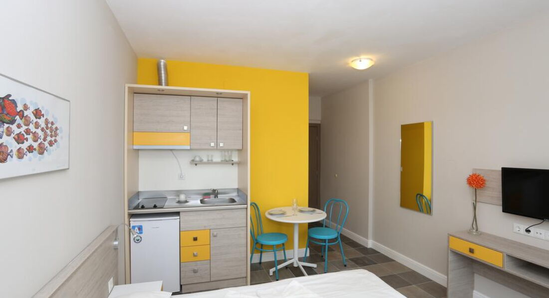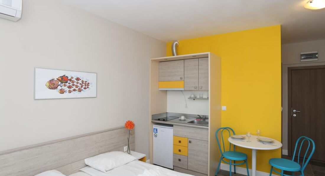 Новий затишний апарт-готель Sunny Residence 3* розташувався у спокійній місцевості у південній частині курорту -квартал Фрегата. Готель пропонує невелику територію з приємним внутрішнім двориком. Поруч із готелем знаходиться кілька ресторанів та продуктовий магазин. Відмінне співвідношення ціни та якості. Підійде для тихого сімейного відпочинку.