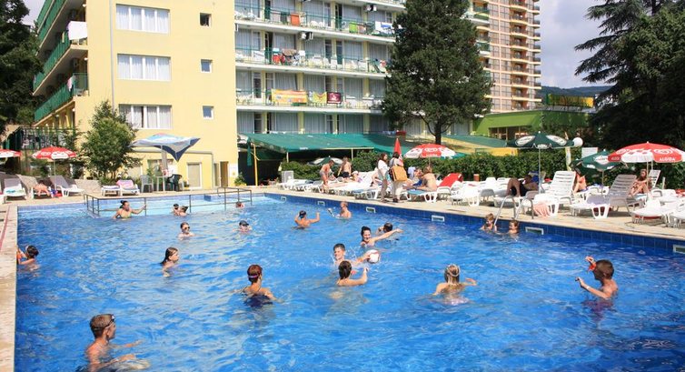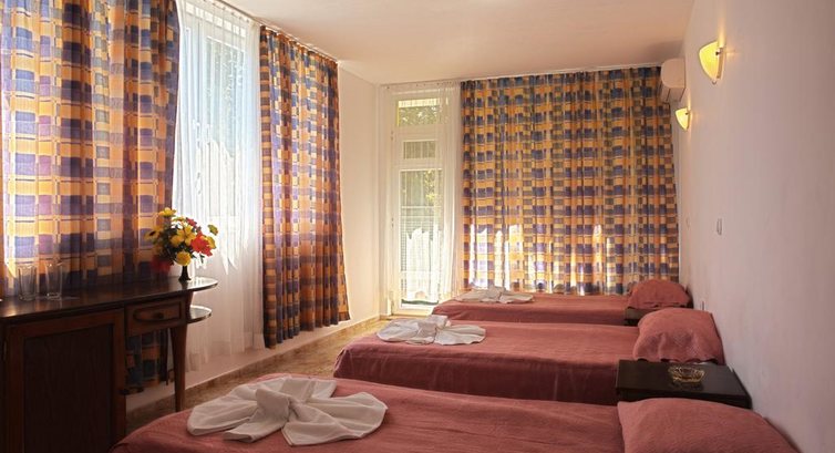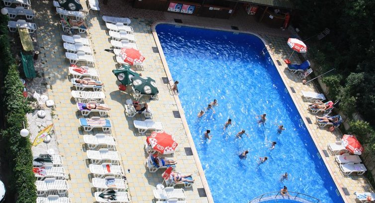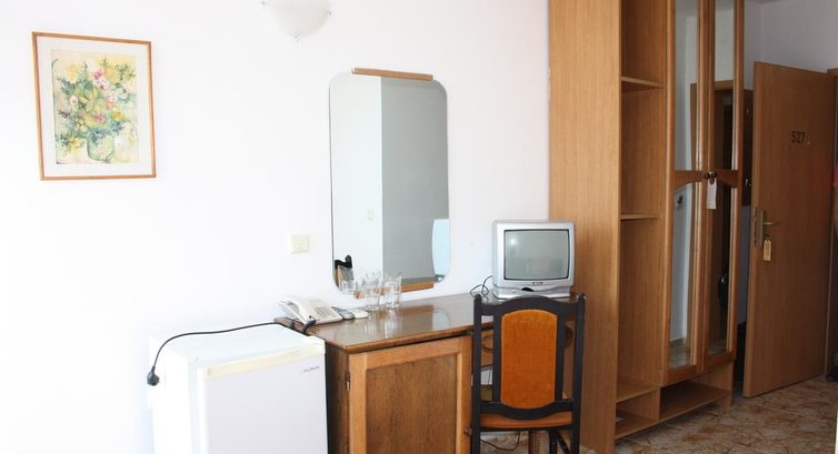 Уважаемые читатели! Если вы амбициозны и не признаете отелей ниже 4* то можете не терять время.коротко расскажу об этом отеле. Мы прилетели с женой на неделю в отель и совершенно не пожалели,тем более что мы приехали за смешные деньги. Приехали в отель в 11.00. Сразу дали номер. Но мы приехали в 2*и номера очень-очень скромные. Поэтому доплатив по 15 лев в сутки заселились в трешку. Номера большие и просторные, 2-х спальная кровать, большая ванная комната. В общем как в Египте стандартные 4 и 5*. Не верьте тем фото что размещены про питание. Все очень даже прилично. Сосиски-сардельки,макарошки,рис,картофель,овощи(салат,огурчики,перец,капуста,лук),нарезка(сыр,ветчина,колбаска). Из молочных продуктов йогурт,творог,очень вкусные вареные яйца. Короче голодными никто не останется и с собой бутерброды никто не приносил. Замечательное месторасположение,очень много зелени т.к отель находится прямо в нац.парке. совершенно не утомительный спуск и подъем к морю метров 350-400м. Ни в коем случае не меняйте деньги в уличных обменниках. Или в отелях или в банке. Я чуть не прибил одного черта-менялу в уличном обменнике возле отеля Империал. Также хочу предупредить и оградить от общения с одним из работников пляжа возле МакДональса. Молодой хамло,горбатенький,худенький а злости на 100%. А вообще народ очень приветливый,особенно старшее поколение. Так что приезжайте в этот отель и не обращайте внимания на плохие отзывы. Приятного всем отдыха!