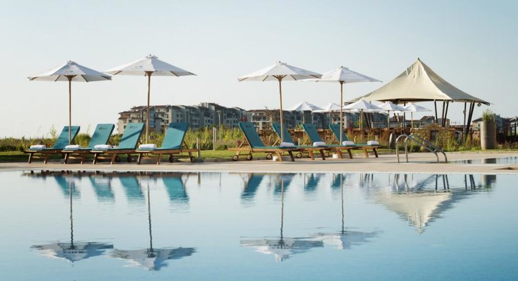семья с ребенком 5 лет, скорее для семейного отдыха, уютный отель, обслуживание на уровне, сам отель находится на второй линии отелей, но перед ним на первой линии отелей нет, просто пустырь с травкой, т.о. номера с видом на бассейн получаются с шикарным видом и на море!!! Очень красиво, номер можно и поменять, нам сначала дали номер со всеми окнами на дорогу, мы возмутились, очень шумно и холодно утром, т.к. бронировали за 3 месяца, без вопросов и денег сразу нашли нам шикарный номер с 2-мя спальнями и кухней (это на 3-их человек то))) большой отличный номер, чисто, аккуратно, красиво, я очень довольна, до моря идти минут 10 по дорожке нас не напрягало и многих мамочек тоже с детьми еще меньше, отель не имеет своих лежаков на пляже, можно покупать у других отелей, можно по старинке запастись полотенцами, нас не напрягало, ибо привыкли мы и отдыхали в гораздо худших условиях, хотя конечно это серьезный минус. Пляж чистый, море чистое, народу немного, т.к. отель находится 3 км от города, рядом дикий пляж, народу вообще никого, но конеш никаких лежаков, камни. До города в центр ходит необычный паровозик и УАЗики за 1 лев с человека, ехать 3 минуты с ветерком, в городе есть рынок и один супермаркет на весь город, сувениры, кафешки, шум, гам, толпа народу на пляже, грязно, дети бегают по грязи, не люблю так отдыхать, у нас в отеле очень тихо, народу немного, хорошо. В обед заказывали в кафе еду и суп детю (много русских с детьми кстати) дешевле чем в городе и вкуснее, если брать бизнес обед так вообще 100 руб с человека, но не всегда бизнес-обеды у них хорошие, нужно смотреть, пицца 120 руб большая и вкусная объедались часто, в Москве за такие деньги пиццу не поешь такую хорошую. Супы дешево, второе на заказ дорого, мы не брали или брали редко, вино и пиво залейся всегда в обед брали. Иногда выбирались в город глотнуть цивилизации, посм. сувениры, прикупить продуктов (часто готовили сами, есть кухня и посуда в номере состояние умеренное, готовить можно и терпимо), походить по кафешкам и обратно в свою глушь и тишину, мужу было скучно, а что он хотел, я не понимаю в отдыхе с ребенком, который транспорт плохо переносит не больно то наездишся, а мне понравилось, отдых прям по мне, 2 недели с перелетом и всеми прибабахами + часто готовили сами, т.к. ребенок выяснилось чужую еду не ест приготовленную в кафе, вышло ок 100 тыс. руб. не дешево конеш, но июль у них самый дорогой месяц.