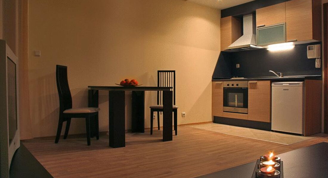 19 small apartment (спальня з двоспальним ліжком, вітальня з розкладним диваном та міні-кухнею (плита з духовкою, посуд, прилади), макс. 2+1 чол., 66–72 м2),