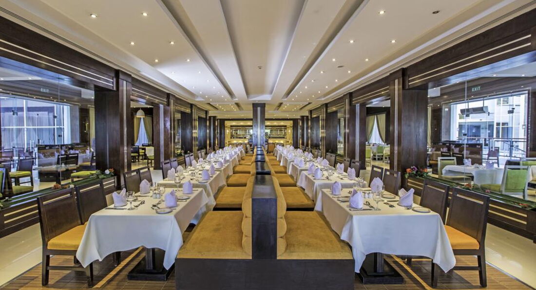 Бари та ресторани: головний ресторан, шведський стіл, міжнародна кухня, три ресторани a la carte – індійська, середземноморська кухні, морепродукти, пляжний ресторан (з закусками), 7 барів, 2 кафе.