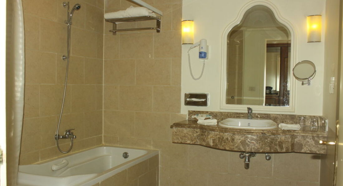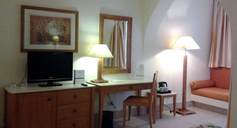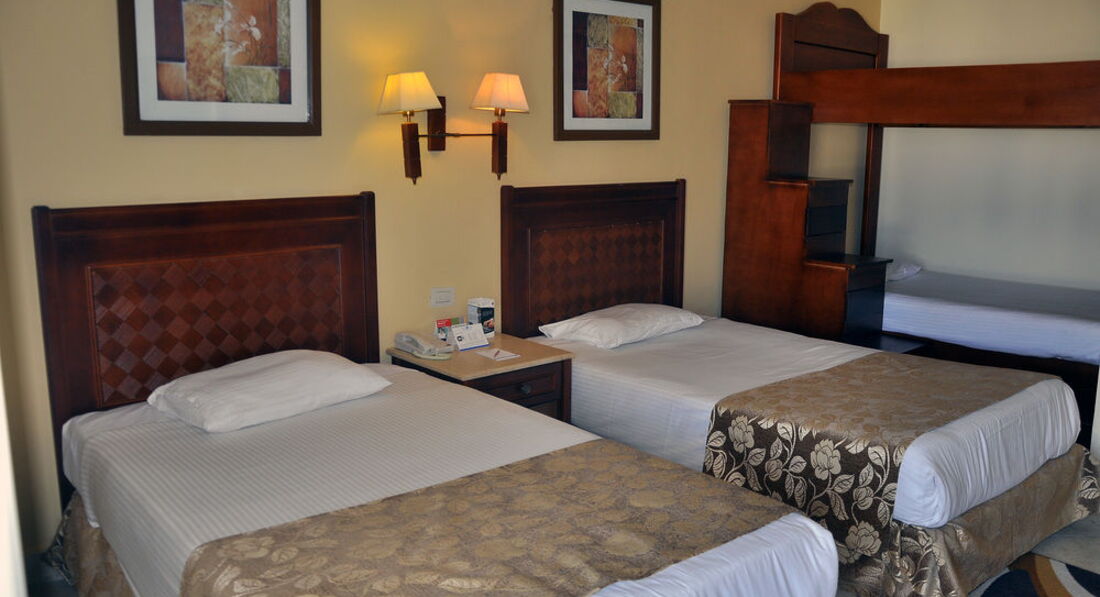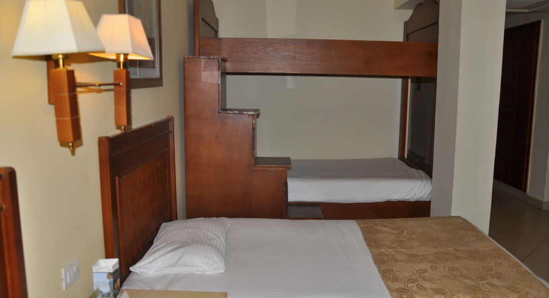 Три дня назад вернулись из этого отеля. При заселении требовали деньги, и не всего 10-20$ а по 10$ за каждый день!!! Старий и убитый отель, мебель старая, ломаная и грязи сколько что на плохую уборку не тянет. Питание однообразеое, половина еды прокисшая. Алкоголь и сок лучшие не пить. На фото номер в котром мы прожили первый день,он на первом этаже, этот номер нас заставили взять. Мы прилетели вечером, время шло к ночи, работники ресепшена поняла что платить 80$ им никтом не будет. Начали издеваться в открытую, рассказывали что ВСЕ номера у нас в отеле такие и не хочешь не селись, будешь спать здесь возле ресепшена. На следующий день номер получше нашелся , НО после просьб и скандалов, после требования поменять отель. Я не стану благодарить персонал, сам отель пуст на процентов 70. Свободных номеров полно, они специально дают самые страшные номера (как на фото), а потом требуют деньги за переселение. Номер в который меня переселили немного лучше, старенький, целая и не совсем убитая мебель, и там было убрано. Но все равно отель не тянен на 5 и даже не на 4 звездочки. Качество питания отдельная болезненная тема. Пусть однообразеое, пусть не особо вкусно, пусть мало и нет особого выбора... но хотя бы не прокисшее продукты. Испорченную еду нужно выбрасывать, а не кормить ею людей. Никому и на при каких обстоятельствах не советую выбирать это ужасное место!