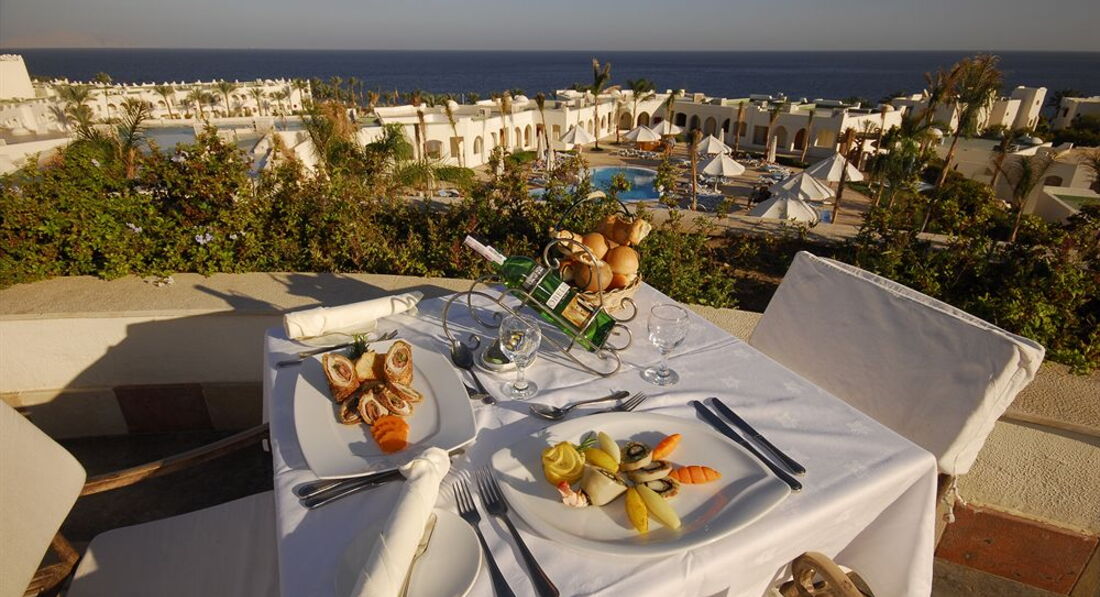 Отель нормальный отдыхал в июле 2012 года. Еда хорошая, много морепродуктов, хорошо готовят говядину и курицу питаться лучше в итальянском ресторане - чище и персонал расторопнее, возможно из за меньших размеров, в ресторан на пляже лучше вообще не ходить- самое плохое обслуживание.вороны в центральном ресторане присутствуют.таскают еду со столиков на улице,но мы ели в помещении там кондиционер и это нам не мешало. Сервис немного быдловатый но это проблема всего Египта и его "высококультурного" населения (по приезде на Родину наши таджики кажутся профессорами) тем кому не нравится просто в другую страну. Отдыхали с друзьями полотенца у них украли на следующий день, а это 20 баксов за каждое думаю крадет сам персонал, мы ходили на пляж со своими.Захода в море с берега практически нет,это надо учитывать тем кто едет с детьми и просто боится глубины( заход с понтона), моя знакомая так и проплавала весь отдых в бассейне. Коралл отличный и главное живой, так что брать с собой маску обязательно.Номер нормальный не супер, но опять же таки стоит своих денег.Территория ухоженная. В магазинах при отеле цена выше в два раза чем в городе. В общем впечатление в основном положительное цена соответствует качеству, ну а за сервисом в другую страну ребята.