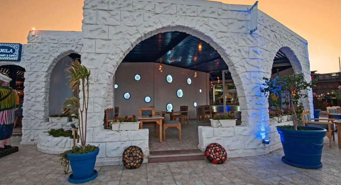 7. Ну и главное - еда. Хорошая мина при плохой игре. Есть - если разобраться - нечего. Да, есть курица ( постоянно пережаренная, вплоть до сгоревшей), и печенка . Маленькая скумбрия - тоже очень зажареная, горькая. Вонючая телапия в различных видах - то с соусом то в панировке. Иногда запеченная говядина какого то странного вкуса, за которой вечная очередь. Ну и всякие бобы, макароны и проч. Выпечка- разной формы но одинаковая на вкус. Фрукты- только дыни. В ресторанах " аля карт" - все тоже самое, а то и хуже. Очень смешно было когда в меню " сибас" , а приносят всю ту же телапию ( или пангасиус). В мексиканском было чуть вкуснее чем везде. Кофе- только автоматы. Только на ресепшен, чуть ли не из - под полы можно было выпросить кофе в турке с кардамоном.