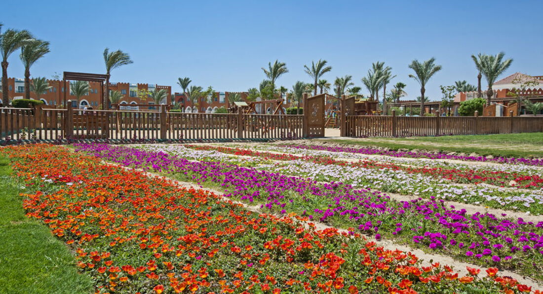На территории отеля много деревьев , но не хватает цветущих кустарников, цветов, кактусов, обширная площадь пустующих газонов с травой которую постоянно стригут практически под ноль, местами наблюдаются проплешины присыпанные песком.