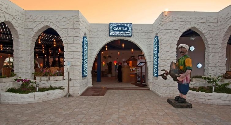 7. Ну и главное - еда. Хорошая мина при плохой игре. Есть - если разобраться - нечего. Да, есть курица ( постоянно пережаренная, вплоть до сгоревшей), и печенка . Маленькая скумбрия - тоже очень зажареная, горькая. Вонючая телапия в различных видах - то с соусом то в панировке. Иногда запеченная говядина какого то странного вкуса, за которой вечная очередь. Ну и всякие бобы, макароны и проч. Выпечка- разной формы но одинаковая на вкус. Фрукты- только дыни. В ресторанах " аля карт" - все тоже самое, а то и хуже. Очень смешно было когда в меню " сибас" , а приносят всю ту же телапию ( или пангасиус). В мексиканском было чуть вкуснее чем везде. Кофе- только автоматы. Только на ресепшен, чуть ли не из - под полы можно было выпросить кофе в турке с кардамоном.