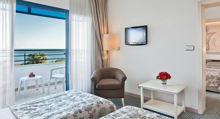 6 Sunrise Jacuzzi Suite (49 кв.м, макс. 2+1 чол., Вітальня, спальня з дверима, 2 ванні кімнати, 2 санвузли, тераса з джакузі, шезлонги, парасолька);