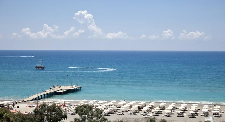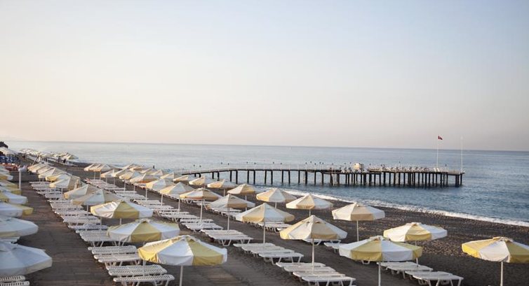 Море замечательное, пляж нормальный, песок с мелкой галькой, вход в море нас устраивал. Не очень понравились, матрасы,скользкая ткань, но терпимо. Есть пирс с четырьмя лестницами и душем. На пляже есть кабинки для переодевания и душ. Жаль, что нет туалета, мало ли кому приспичит, а бежать до бара надо! Отель был заполнен полностью, поэтому пару дней наблюдались проблемы с лежаками. С полотенцами в отеле проблем вообще нет, в течении дня с 8-12 и с 13-18 их свободно можно поменять. На пляже убираются, и если бы наши сограждане не свинячили и не носили стеклянные бокалы на пляж , было бы вообще здорово, потому как эти бокалы иногда разбивались. Вот зонтики отелю уже пора наверное поменять, страшненькие, как-то они не соответствует звездности.