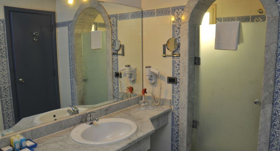 Отдыхали в этом отеле втроем с мужем и дочерью школьницей. Прилетели рано утром, в аэропорту нас встретили гиды нашего туроператора, достаточно быстро посадили в автобус и повезли в отель. От аэропорта до отеля не далеко, добрались быстро. На ресепшен нас встретили, повели показывать номер, мы взяли обычный номер на двоих и для дочери нам принесли кровать. Номер достаточно просторный и нам втроем не было тесно. В номере одна двухспальная кровать, шкаф, столик с креслами, чайные принадлежности, телевизор, холодильник, мини бар, кондей, ванная, туалет, терасса с видом на море. Все прилично, ничего не сломано и главное чисто. Убирались в номерах раз в день, пока мы были на море или на обеде, чаевые оставляли пару раз, но смысла особого в это не было, качество уборки всегда было хорошее. Также каждый день оставляли питьевую воду в 1,5 литровых бутылках, что было очень кстати, потому что жара стояла сумасшедшая весь наш отпуск.