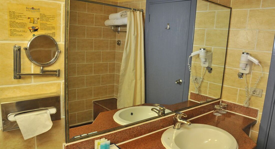 В этот отель я прилетела второй раз, специально выбрала время когда дома осень набирает обороты, дожди, ледяной ветер, заморозки, а я в Египте на солнышке нежусь. И вот в период с 11 по 20 октября я провела в моем уже любимом отеле. Отдыхаю я всегда одна, мне нравится отдалится от всей суеты, от лишнего общения, я делаю что хочу, еду куда хочу, встаю и ложусь тоже когда хочу. Согласитесь в современном мире, позволить себе такое это роскошь. Поэтому и санрайз роял, именно в этом отеле, я чувствую себя комфортно.В первую очередь комфорт заключается в территории отеля, все так умно спланированно, что в любой части можно найти себе уединенный уголок, в ресторане обязательно найдутся столики в тихом месте, на газоне тоже места хватает всем и даже дети и насекомые могут вас не замечать, а вы их. Прекрасно удаются вечерние прогулки по отелю, подсветка придает особую романтику. Днем у бассейна всем хватает места, я всегда ищу место подальше от большого скопления людей, и официант все равно не оставляет меня без внимания, не навязчиво он дает понять, что всегда рядом, если вдруг мне что то понадобится. Но неподумайте, по моему описанию это какой то пансион, это довольно таки тусовочный отель, семейный и молодежный я бы сказала, тут и развлечения на любой вкус, утром аниматоры вам разомнут косточки по вашим пожеланиям, кто активный, вперед на аэробику в бассейне, кто любит ловить дзен, как я, вот вам йога на травке. Обычно я после нее шла на пляж. Помимо аниматоров есть аквапарк, так же для детей детский клуб, наверно там весело, потому что проходя мимо я видела там не мало ребятни, вечером они не тихо скажем так проводят дискотеку для детей. Вообще много семей с ребятней, с подростками и с теми кто еще в коляске сидит. Национальностей много, наших может треть, остальные немцы, англичане, немного египтян, а может и не египтян, выглядели они как арабы. Номера немного хромают от общей инфраструктуры , этой и есть особенной изюминкой, которая мне не совсем по душе, хочется больше уюта, хочется кровать по новее, да и косметический ремонт не помешал бы. И я конечно свято верю, что хозяева учтут такие комментарии и все таки освежат номерной фонд. {удалено модератором: несанкционированная реклама}Хотелось бы отметить что в отеле отлично работает вай фай, в прошлый мой приезд было не так весело с этим. И вообще персоналу спасибо за возможность отдохнуть с прекрасным ненавязчивым сервисом.