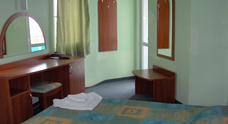 Отдыхали с дочерью в июле 2013 г. Отель небольшой, расположен на окраине деревни, но до центра, действительно, метров 300. Объективно, пейзаж вокруг не потрясает красотами, выглядит несколько захолустно, поскольку отель построен "на задах" частного сектора. На первый взгляд здание выглядит даже слегка запущенным - на фасаде красуется только "Sunset", слово "beach" либо когда-то отпало, либо ещё не установлено, мебель в лобби изрядно потрёпанная, обстановка далека от изысканности, и, честно говоря, на вселении я даже была всем этим расстроена. Но сразу скажу, что в последующие дни на эти мелочи мы внимания уже не обращали. Во-первых, с балкона нашего номера открывался вид на море, и ежедневно мы засыпали и просыпались под шум прибоя и крики чаек. Во-вторых, сам номер был чистым и светлым. Оснащение стандартное - удобные кровати, душ, фен, индивидуальный кондиционер, холодильник, ТВ с 3-мя каналами на русском языке. Уборка ежедневная, смена постельного белья - каждые 3 дня. Горничные чаевых не берут!!!! Мы пытались по привычке оставлять несколько левов, но неизменно после уборки находили их на месте.