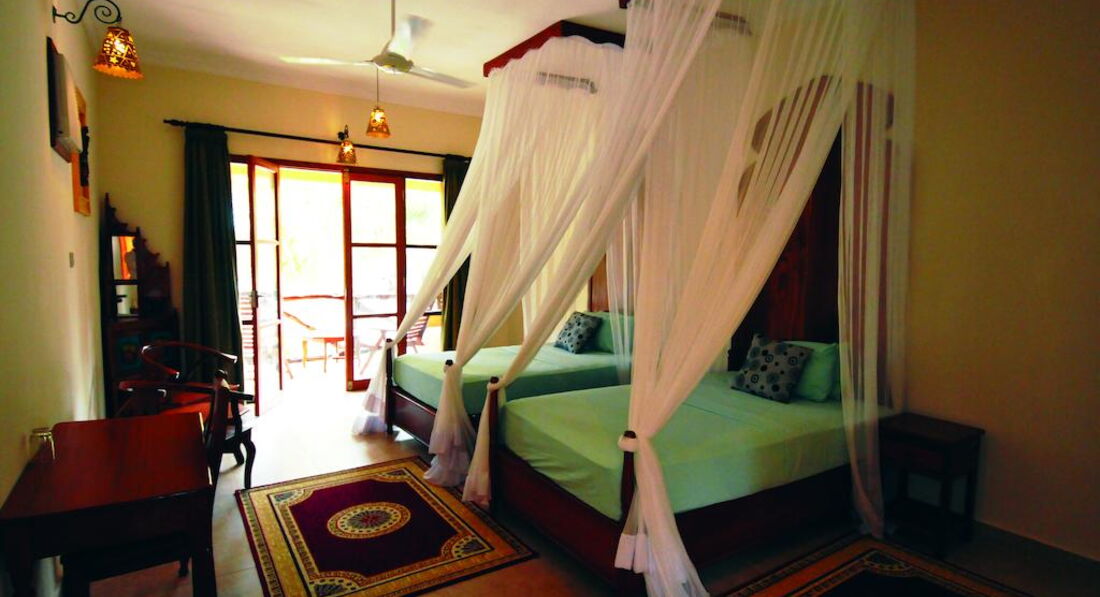 Court Yard (A/C) (Традиційно оформлені номери і бунгало обставлені занзібарськими меблями і мають ліжко з балдахіном і протимоскітною сіткою, кондиціонером, зоною для відпочинку і сейфом. У власній ванній кімнаті є душ і фен. Розташовані ближче до пляжу.)
