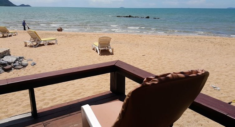 Отличный отель!!! Жили как в раю! Съездив в Паттайю, поняли, насколько нам повезло с отелем. Тишина, птички поют, бурундучки бегают! Жили в номере Beach Superior, просто сказка! Шум прибоя, до моря 5 метров. Никаких камней на пляже нет, отливы были ночью, днем прилив. Пляж чистый, народу мало, первые дни казалось, что мы в отеле одни. Очень понравился отельный гид Иван , порекомендовал наиболее интересные экскурсии, рассказал все нюансы, так что ему отдельное спасибо! До сада Нонг Нуч можно дойти пешком, это рядом. В кафе возле отеля можно пообедать вдвоем на 300-400 батов, в городе гораздо дороже. С общением проблем не было, можно объясниться и на английском, и на русском, в крайнем случае на пальцах, хотя русский многие понимают, в кафе вообще без проблем. В общем, кто хочет совместить пляжный спокойный отдых с интереснейшими экскурсиями, очень рекомендую этот отель!