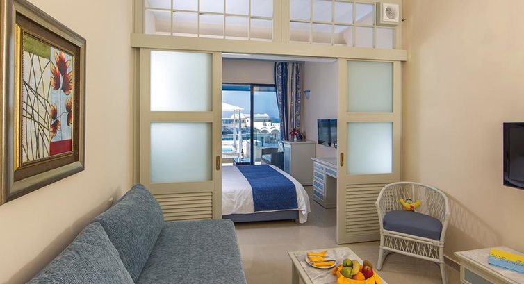 Family Room Sea View 3+1 |спальня та зона вітальні з розсувними дверима, вид на море|.