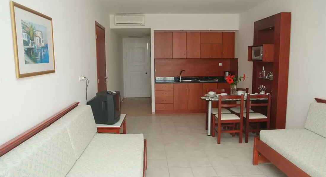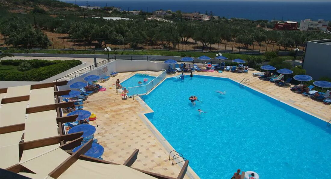 Зручні просторі номери, зелена територія, басейн, ресторан, бар, послуги для дітей, розважальні програми, спорт. Гості готелю можуть користуватися комплексом Sunshine Crete Beach, розташованого нижче, через дорогу – поряд з морем.