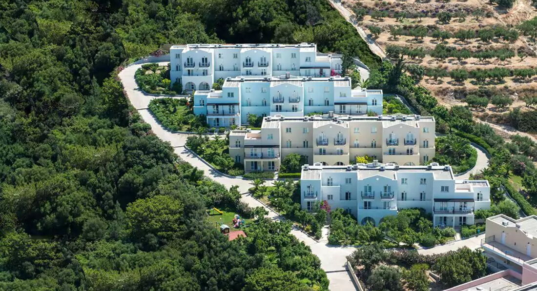 Готель розташований біля підніжжя гори (на пагорбі), складається з центральної двоповерхової будівлі та комплексу Village A – 4 триповерхові будівлі & Village B – 2 двоповерхові будівлі. Гості готелю можуть користуватися послугами п'ятизіркового комплексу Sunshine Crete Beach, розташованого нижче (200 м).