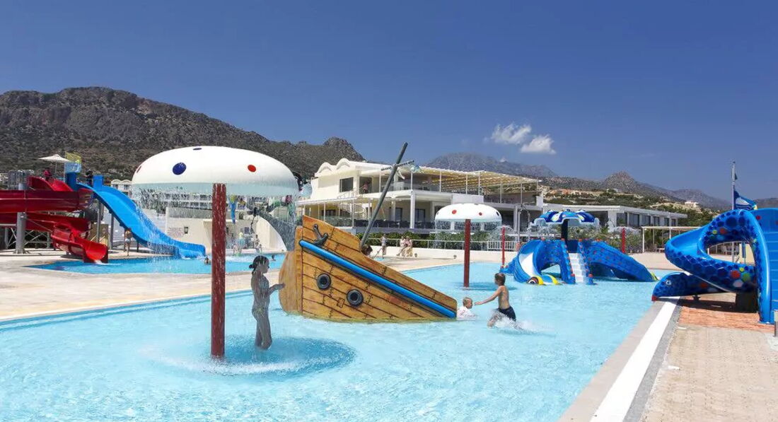 •дитяча секція у центральному басейні (25 кв.м.). на території готелю Club Calimera Sunshine Kreta - 2 дитячі басейни (в одному з них 4 дитячі водні гірки, дитяча секція в басейні)