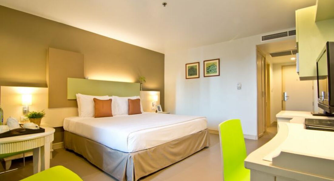 Что нам больше всего понравилось, так это персонал отеля, очень дружелюбные и приветливые тайцы, в любом вопросе помогут, откроют двери, вызовут лифт и т.д., номер убирали каждый день без нареканий (постельное белье, полотенца меняли каждый день + мыли полы, убирали мусор после вечернего застолья и протирали столы), при заселении мы попросили этаж повыше с видом на море, данную просьбу учли и заселили на 8 этаже, кроме этого мы приехали примерно в 10 утра, а заселение по графику в 12, но на без проблем дали ключ и заселили сразу. Депозита в отеле нет. В отеле из национальностей еще отдыхали русские, китайцы, немцы, еще какие-то европейцы, индусов было может пару-тройка человек. Персонал отеля очень хорошо говорит на английском языке, русский язык вообще не знают, но для нас это не было проблемой. Комната была в хорошем состоянии (superior) с балконом. Завтраки очень вкусные, свежие и разнообразные, breakfast box такой, как и у других – бутерброд и сок. Wi-fi бесплатный. На последнем (10м) этаже находится 2 бассейна (взрослый и детский), бар, лежаки. Кстати, полотенца выдаются даже с собой на экскурсии. На 9 этаже расположен Fitness room, но тренажеров очень мало и гантели максимум 15 кг, так что он только для красоты. Из отрицательного можно отметить только, то что рядом с отелем со стороны моря велась стройка, и, скорее всего, в будущем к отелю будет впритык стоять здание, закрывающее вид на море, но это только предположение.