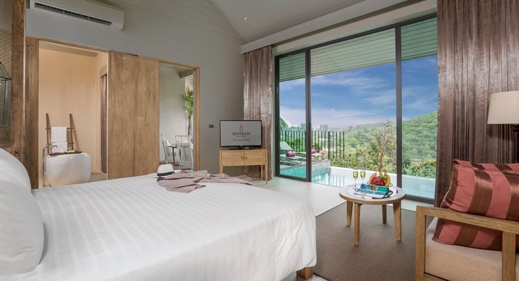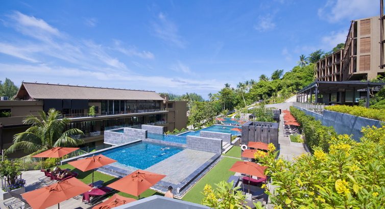 Отель находится в самом красивом месте на Пхукете. На горе с большим разнообразием номерного фонда. Не очень удобно только туда сюда подниматься.Очень красиво оформлен дизайнерами с очень интересными решениями.