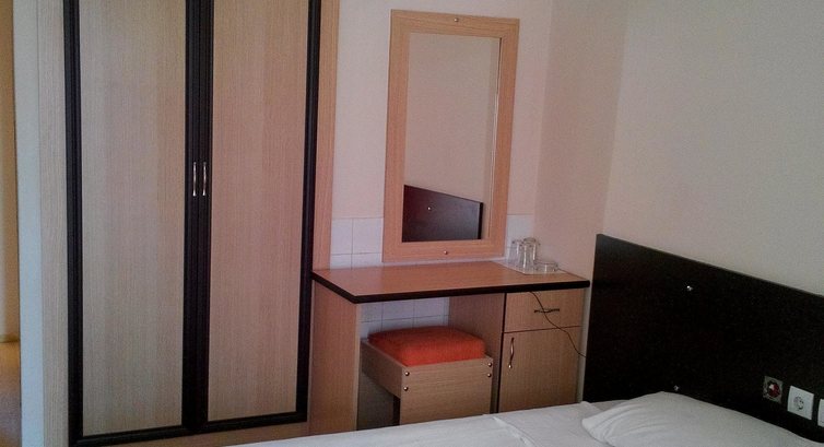 Приехали с сыном вечером, нас заселили и дали ужин. Комната не большая, кондиционер есть. Сразу скажу, что туалет и душ не мыли ни разу, душ --это угол с водой, когда выходишь, то плывешь... Есть не большой бортик, но он не помагает.... Фен работает исправно. Полотенца меняли каждый день, кроме того, что для ног, его поменяли через 12 дней и 3 дня не приносили. Белье меняют по мере надобности. У меня пару раз меняли. Еда не вкусная, за 18 дней давали 2 раза рыбу, 2 раза воренную куру, 3 раза чикины, в остальные дни какая то подошва, а-ля кебаб... Мы ели только гарниры и салаты. Днем мяса нет, только вечер. Из фруктов: арбузы и дыни. Завтрак скудный (как и обед с ужином), но мы не голодали, было жарко и особо не хотелось. Море близко, минут 5, пляж грязный, но море чистое! Рядом с отелем есть рынок (работает только по ВТОРНИКАМ), много магазинов. Все они находиться через дорогу от отеля, как бы за площадью. До центра едут автобусы 6 и 8... В нашем районе особо пойти не куда, надо ехать в город ). Мы люди не привередливые, через пару дней привыкли, но вот те, кто в этом отеле останавливались не в первый раз, сказали что стало хуже, и больше не вернуться. Вывод такой: если вы не появляетесь в отеле и не кушаете в нем, а приходите только ночевать, то нормально. Все приветливые, пытаются помочь.... Улыбаются...
