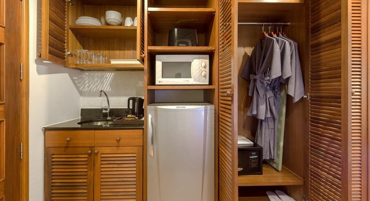 В номере есть всё необходимое (у нас был Роял студия). Убираю каждый день, отлично.