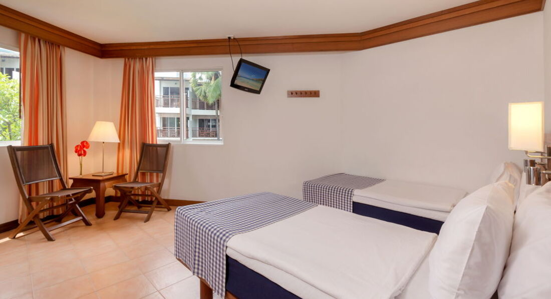Здравствуйте!!! Хотела бы поделиться своими впечатлениями об отдыхе в данном отеле! Начну с того, что летели мы 8,5 часов до Пхукета! По прилету быстро прошли таможню! Нас посадили в комфортный микроавтобус!! От Аэропорта до отеля ехать не долго это обрадовало! Приехали в отель мы где-то в 9 часов утра. Нам сказали номеров свободных пока нет, нас угостили свеже выжатым соком. (Он был холодненький и вкусный, мне очень понравилось). Мы оставили свой багаж на рессепшене и пошли посматреть территорию отеля. Очень уютная, ухоженная и не большая территория. Мы вышли а пляж погуляли вдоль пляжа посмотрели, что есть вблизи. (ну около минут 30 гуляли). Вернулись а нас уже заселили. Т.е. мы долго не ждали заселения в 10 мы уже побежали купаться)))) Номер у нас был на 3 этаже в пером корпусе от основного. Не помню уже какой это корпус. Номера просторные чистые, постель нам за 2 недели меняли 2 раза. Убирались у нас каждый день. На нашем этаже мы жили и еще одна семья!!! Весь этаж был в нашем распоряжении)) У нас включены были только завтраки. Обедали мы в Марусе. Очень даже вкусно и большой выбор блюд). (находиться как выходишь из отеля и на право, первый раз мы поехали на тук-туке. Кстате напротив отеля расположена стоянка тук-туков и такси. В отеле так же есть прокат мотобайков. Мы их не брали так как не было с собой вод.удостоверен. По поводу анимации в отеле она не на русском языке вечерами и только для детей. И притом не каждый день. Так же иногда бывают концерты. Кстате артисты очень хорошо поют. Ездили на экскурсии: на змеиную ферму, парк птиц (это в одну экскурсию входит), смотрели город Пхукетаун, ездили в парк Фантазия (там показывают потресающее шоу!!!!! у нас был дикий восторг!!!) Ездили на морскую прогулку на целый день на острова Пхи-Пхи. Тоже красотень там конечно!!!!!! И Аквапарк!