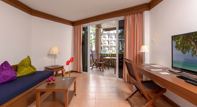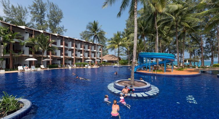 Отдыхали в этом отеле в январе 2012г в шестером:четверо взрослых и двое маленьких деток близнецов.Летели из Омска с Пегасом в полете 8 часов и мы на Пхукете.В Таиланде не первый раз этой осенью собираемся этим же составом.Отель подбирали по отзывам чтобы было комфортно и детям и нам взрослым.с выбором отеля не ошиблись,рекомендуем кто ищет для отдыха с малышами.Отель заполнен на половину русскими туристами с детьми остальные скандинавы.Заселили практически сразу по приезду Попросили чтобы нас заселили рядом,нам достался домик у реки на два входа.Номера очень большие просторные с большой кроватью и диваном кресла столик.Встроенная кухня с холодильником микроволновкой чайником необходимой посудой и чайными принадлежностями,вообщем как дома,что очень удобно для приготовления детской еды,дочка часто сама готовила кашки малышам.В отеле брали только завтраки,я думаю что завтраки в полне достойные,нам всего хватало,были омлеты кашки супчики,сыры,различные колбасные изделия,разная выпечка,фрукты.Обедать и ужинать ходили в соседнии кафе и рестораны,кушали в разных местах,чтобы все попробовать и оценить.Иногда ужинали в ресторане своего отеля,все нравилось,все было вкусное,даже для малышни для них специальные детские неострые блюда.Территория отеля не очень большая компактная но все необходимое имеется:детский клуб,детская игровая площадка,много бассейнов которые примыкают к корпусам.Пляж недалеко от отеля метров-50. На пляже кафе ,различные магазинчики с пляжными принадлежностями,сувенирами,мороженое,соки,фрукты.В сувенирной лавке домой купили огромную голову слона из тика -это порода дерева.От Пегаса брали экскурсии.Две недели пролетели незаметно и быстро.Хороший отель,замечательная страна,улыбчивые добродушные тайцы.Скоро приедем на Пхукет!!!