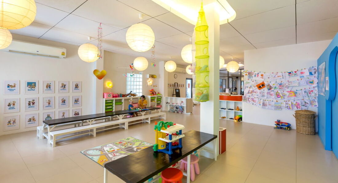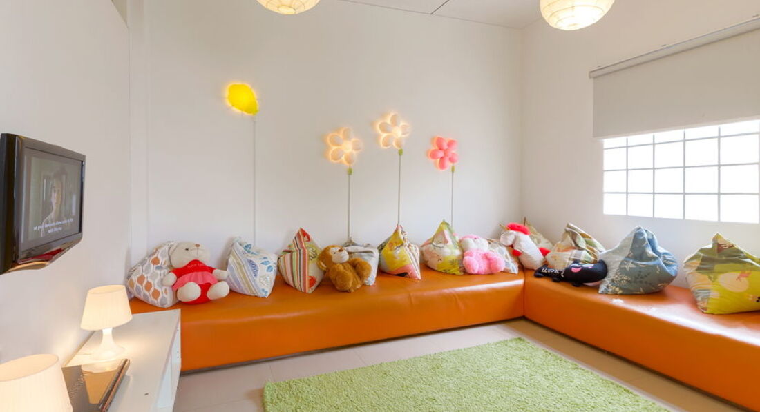 Есть детская комната, с кондиционером. Внутри можно играть родителю с ребенком