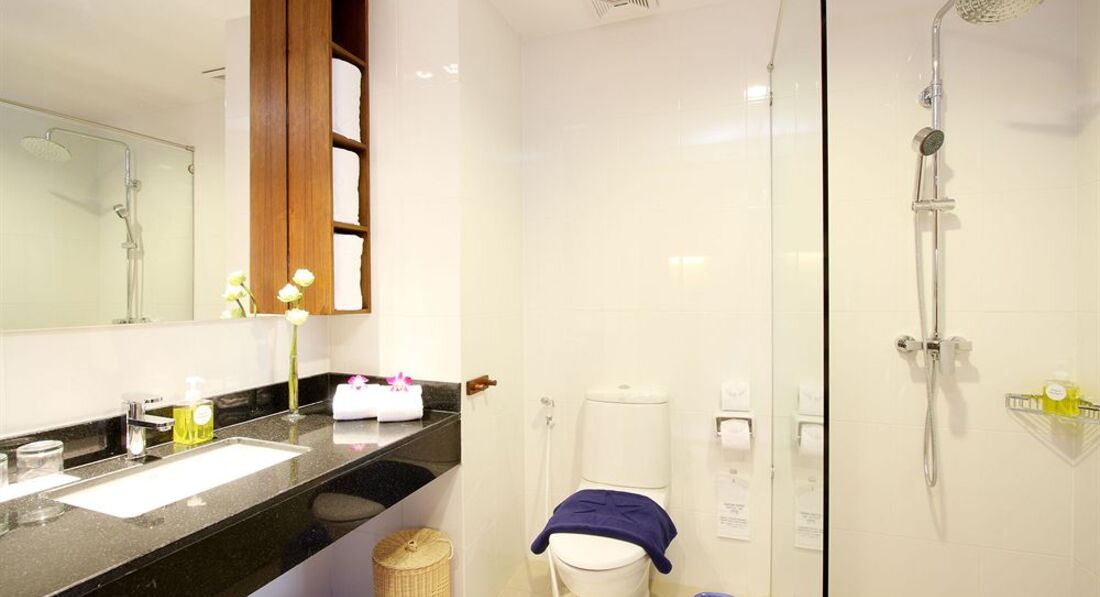 Долго и тщательно выбирали отель и не разочаровались. Отель действительно хорош, разместили как и положено в 14.00, правда после длительного перелета довольно тяжко было ждать размещения в течение 4х часов (на рецепшен всего один кондиционер, поэтому нам в джинсах было не очень комфортно, жарко и душно). Однако ожидания себя оправдали - номер хороший, просторный, чистый; все, что заявлено в описании есть, порадовал холодильник - не как обычно в отелях - минибар, а достаточно вместительный, соки, вода, фрукты (в том числе арбуз) все вмещалось, даже есть емкости для льда.