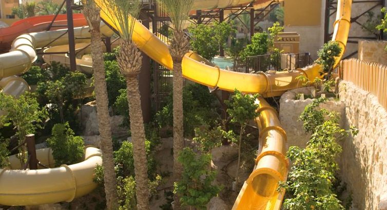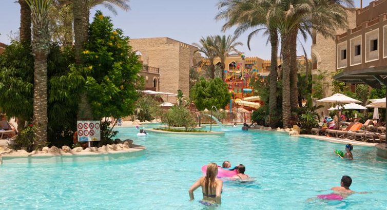 Отдыхали в этом отеле в мае 2014 года. Прибыли в отель в 8 утра (ранний прилет), заселили сразу же, без ожиданий. Номера конечно впечатляют, большие, разделенные на две зоны: гостиная и спальня, с гардеробной комнатой. У нас было два номера. Один выходил на бассейн и детский аквапарк, а другой был расположен ближе к бассейну с искусственной волной. Шума постороннего не было. В отеле действительно водный мир: и взрослые горки, и детский аквапарк и ленивая речка (очень любили плавать на ватрушках по ней после обеда). Питание было вполне приемлемое, нравилось ходить и в основные рестораны (правда лучше приходить к открытию), очень любили ФИНО (отмечали там день рождение, для нас устроили настоящее шоу). Также посетили итальянский и мексиканский, сильно не впечатлило. Этот отель выбирали, так как в Макади уже отдыхали неоднократно. Нравится чистейшая бухта со всеми красотами Красного моря (альтернатива Шарму). Для деток был просто рай: аквапарк, детская анимация (по вечерам в закрытом помещении, расположенном в пляжной зоне проходили мини-диско, детские развлекательные мероприятия с ростовыми куклами), приобретенным жирафиком Лу-лу дочка до сих пор играет, есть мини-клуб "Библиоша" на территории соседнего отеля. Для взрослых анимация также присутствовала и днем и по вечерам, ненавязчиво, нам вполне хватило. Неплохой отель для семейного отдыха с детьми.
