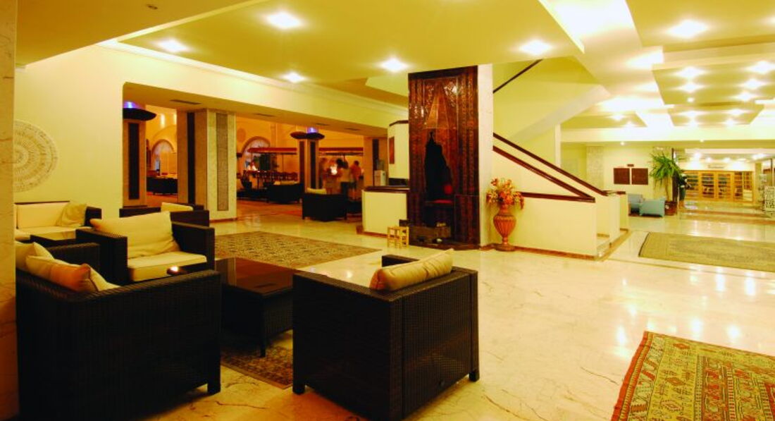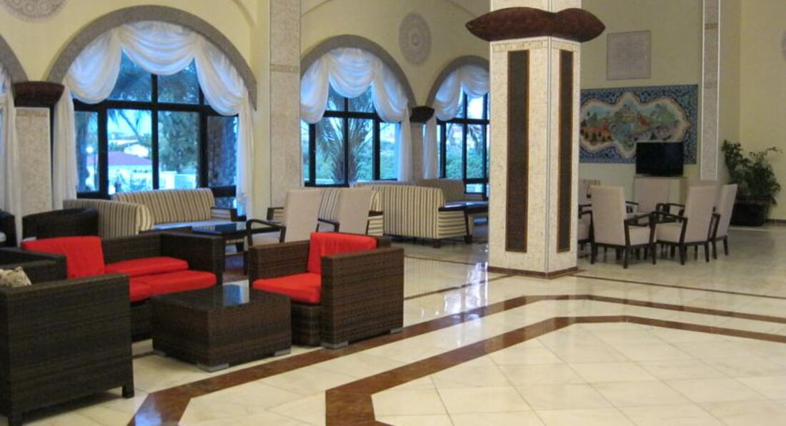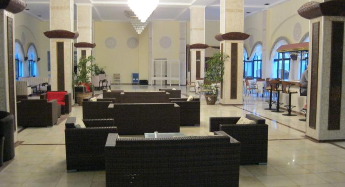 Внешний вид отеля нормальный. Не новый, но приличный. В просторном холле - барельефы под Вавилон, удобные кресла и диваны из полимерного "ротанга", столики, лобби бар - все как обычно.