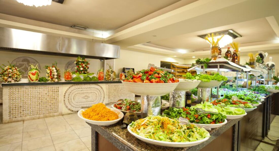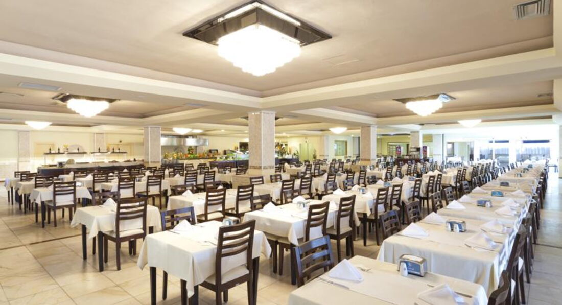 Бари та ресторани: Основний ресторан: Сніданок з 07:00-10:00, Пізній сніданок (за запропонованим меню) з 10:00-11:00, Вечеря з 19:00-21:30, Пізня вечеря з 00:00- 00:30. Шведський стіл. Ресторан розрахований на 750 осіб на терасі та 750 у приміщенні. У ресторані куріння заборонено. Ресторан на пляжі: Обід з 12:30-14:30 (шведський стіл).