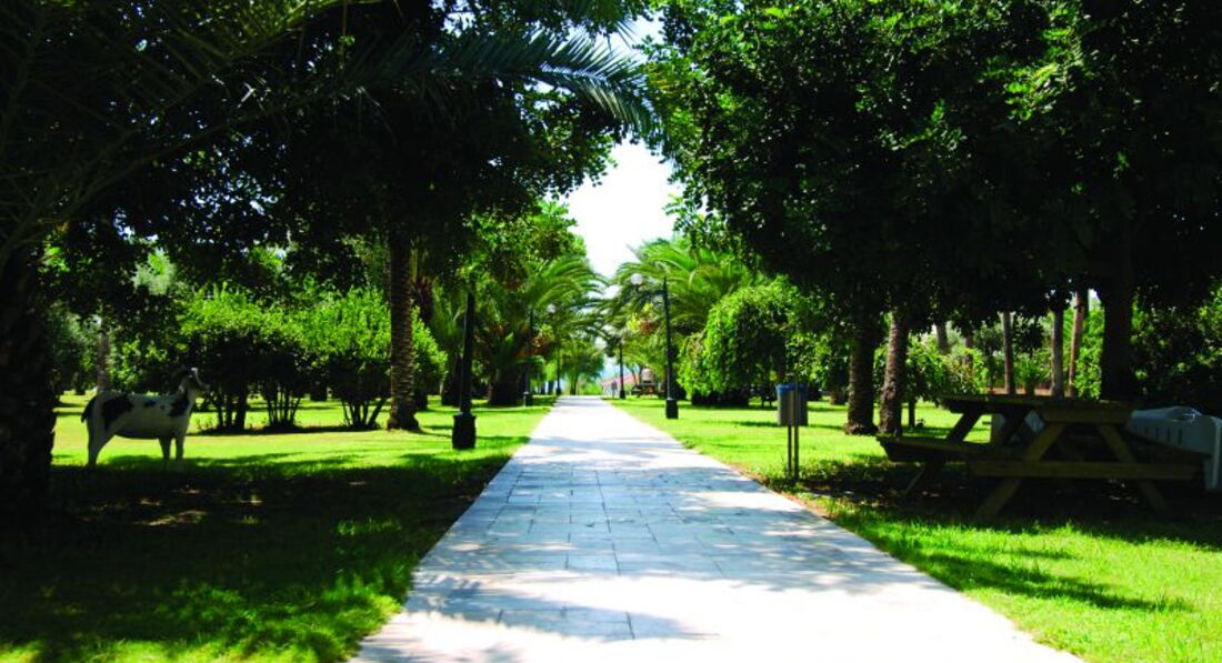 Вокруг отеля. Между отелем и пляжем проходит дорожка для променада - можно гулять в обе стороны. Через дорогу от отеля комплекс магазинов и базар, принадлежащий этому же хозяину. Вокруг много зелени (для региона Сиде). Прокат сигвеев и электробайков. Обычный велосипед найти не смог.